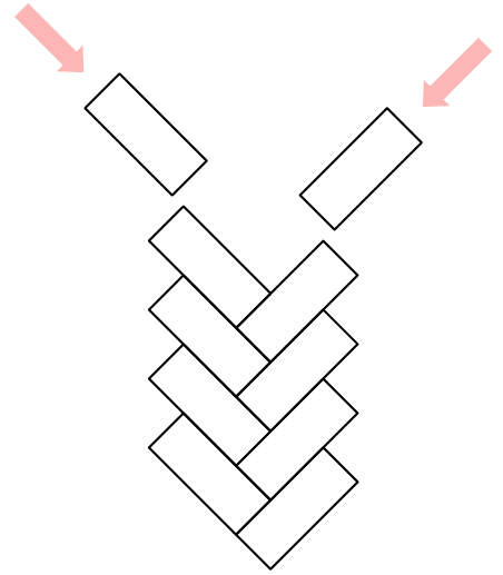 Lưu ý là nếu xuất phát từ đường thứ nhất, điểm đích sẽ nằm ở đường thứ ba, tức là nó đan vào nhau, tương tự như cách vẽ bím tóc thẳng.