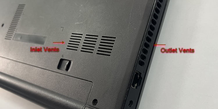 Lỗ thoát khí sẽ thải ra khí nóng (thường là nóng). Bạn cũng có thể thử chạy các ứng dụng nặng, chẳng hạn như trò chơi để đảm bảo quạt chạy ở tốc độ cao để bạn có thể cảm nhận được luồng khí thải. Nói chung, lỗ thông hơi vào nằm ở dưới cùng của máy tính xách tay và lỗ thông hơi thoát ra nằm ở bên cạnh hoặc gần bản lề.
